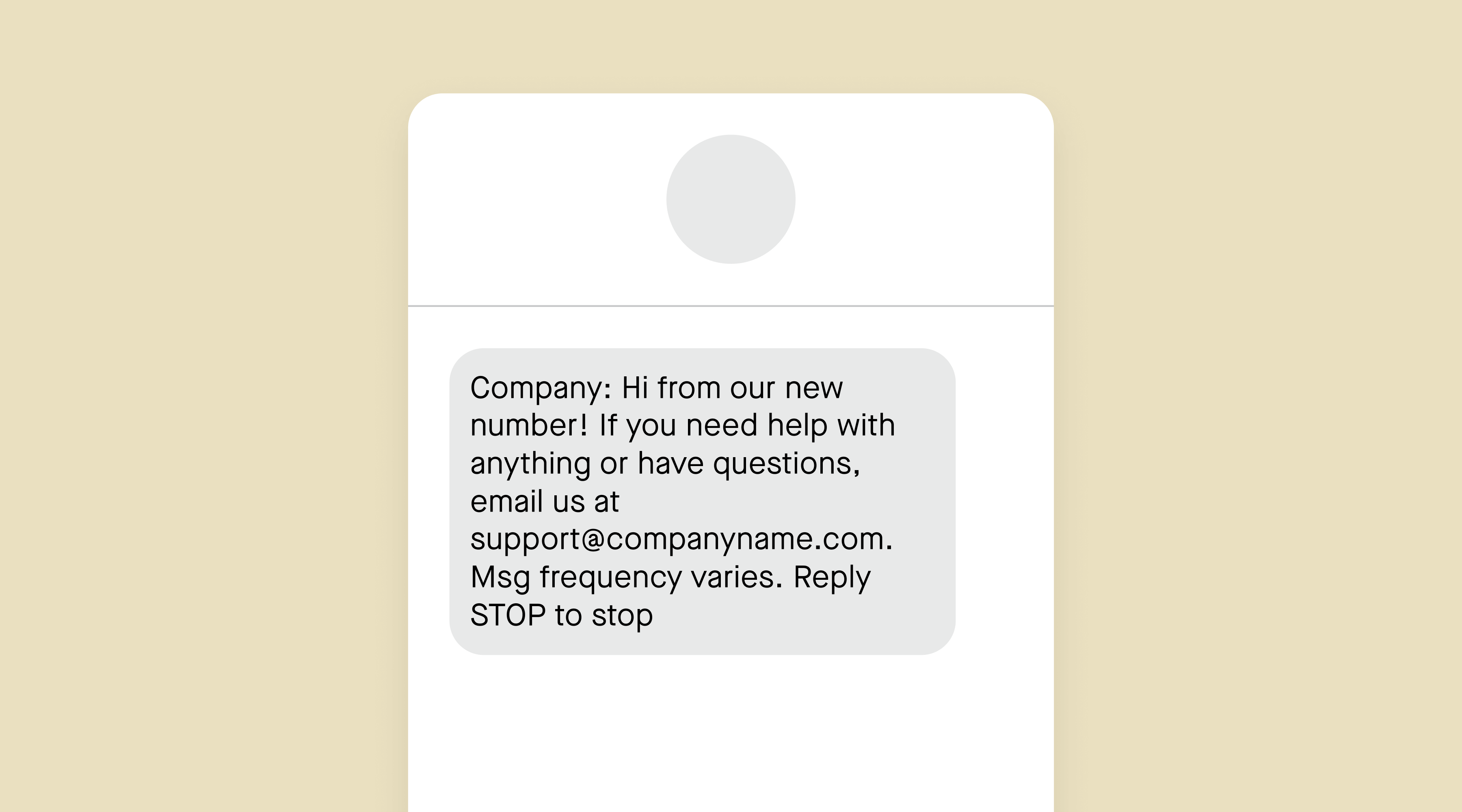 The second message is sent on the new phone number. Though carriers don’t require a specific timeline for this, we recommend sending it 12-24 hours after the first message. It must include: