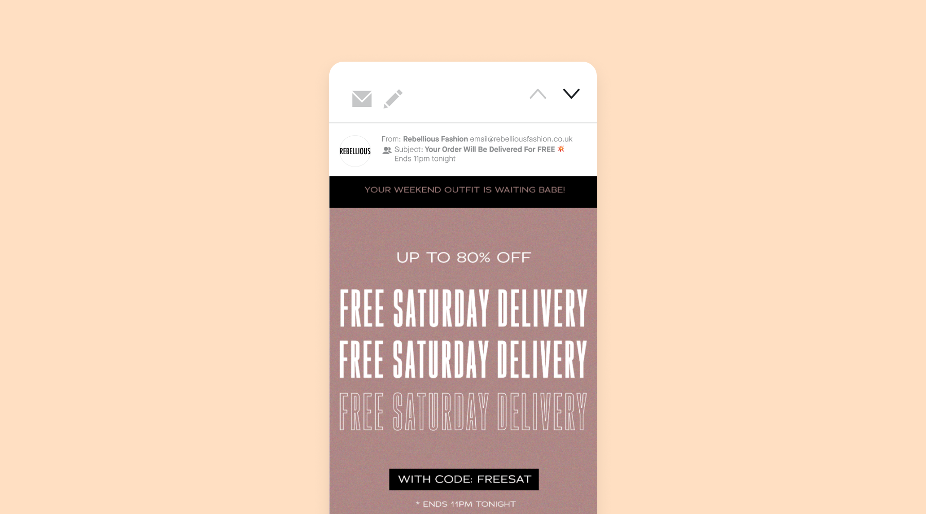 For less-engaged subscribers, focus on transactional communications emphasizing value or incentive. Consider sending an SMS or email with a limited-time offer or discount code valid during the event. This creates a sense of urgency and timeliness, motivating customers to act fast before the offer expires. For example, you could offer 15% off all items in a "Runway Trend Edit" or send a free delivery code to your loyal customers.