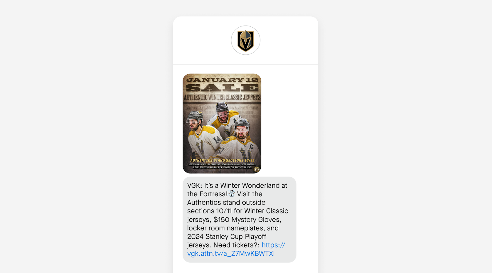 The Vegas Golden Knights have been focusing their efforts on creating engaging, personalized experiences for their fans with audience segmentation and MMS. Using zero-party data about fan interests along with geographic and engagement data, the hockey team created more than 50 segments to tailor messages to the wide variety of experiences fans have with the team.