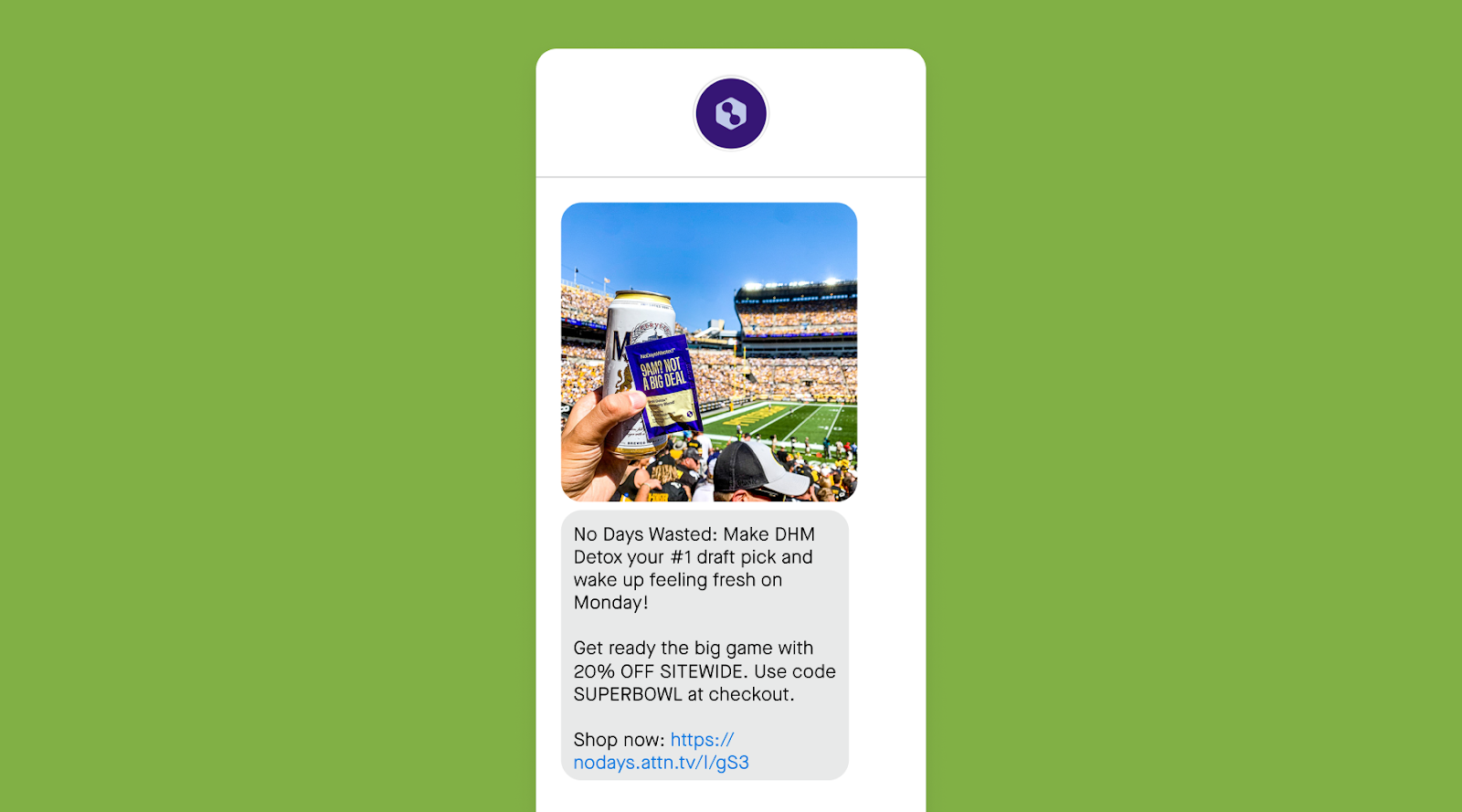 But your SMS strategy shouldn’t stop at the buzzer. From pre-game prep campaigns to timely flash sales, your campaigns can take advantage of the marketing opportunity all weekend.