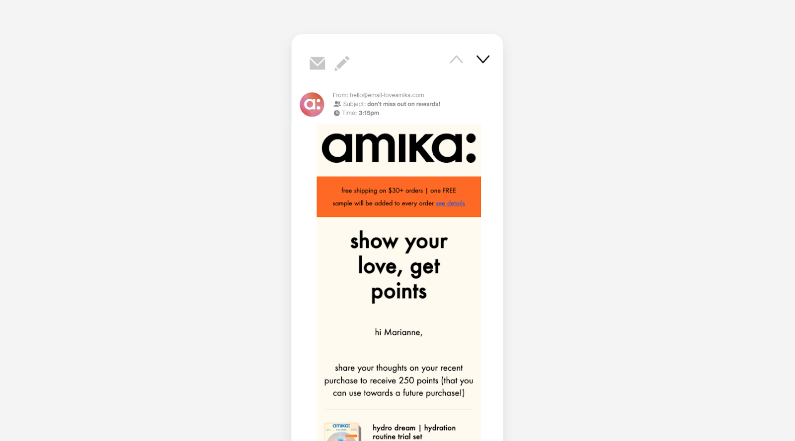amika® uses LoyaltyLion to recognize milestones, surprise loyal customers, and keep their points economy active. With Attentive Email sending these messages, they’re able to bring more personality, clarity, and timeliness to each touchpoint.