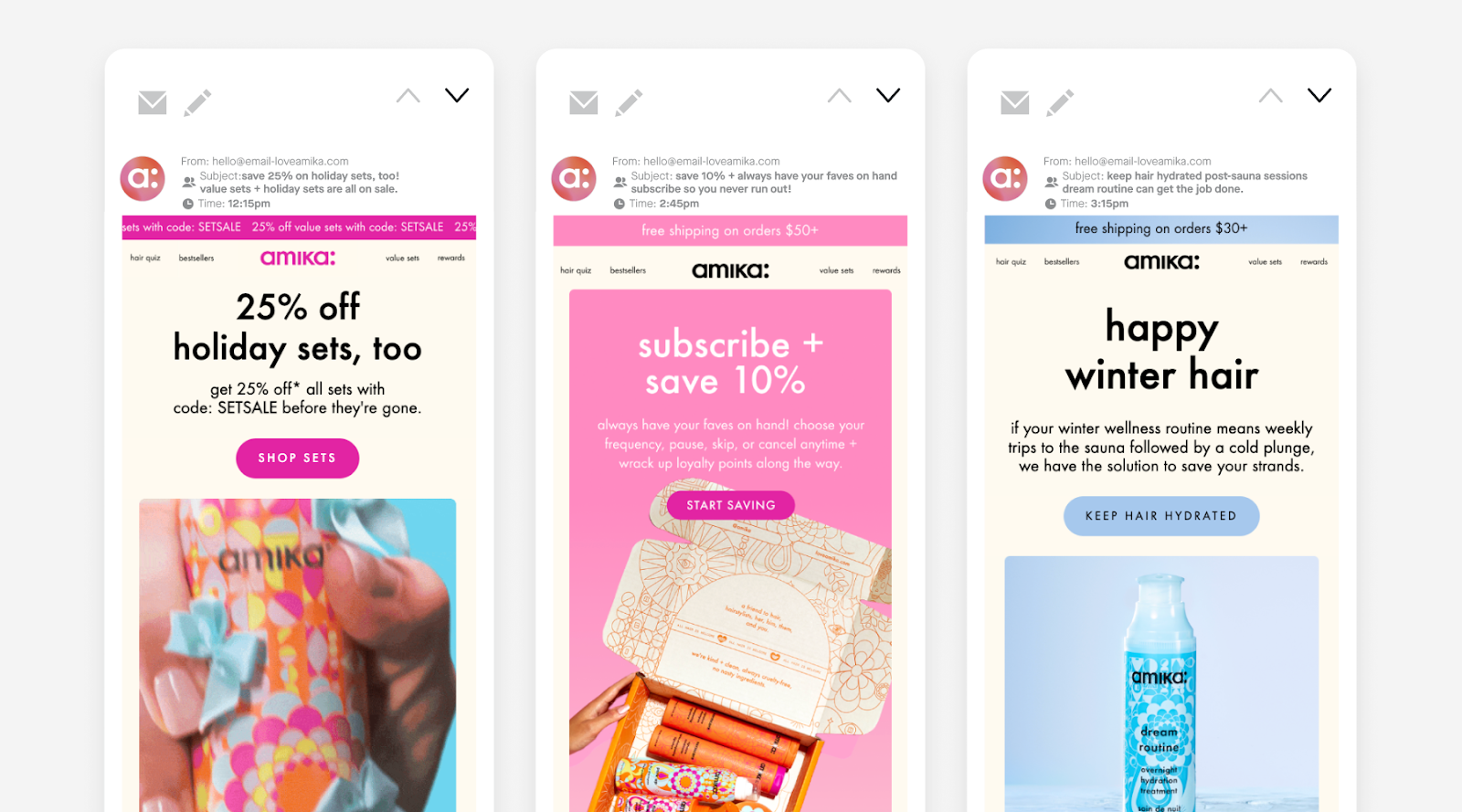 These emails are short, clear, and conversion-ready—and the improved deliverability ensures they consistently land where customers will engage. Together, they help amika® reinforce loyalty and bring shoppers back into the ecosystem without relying on heavy discounts.