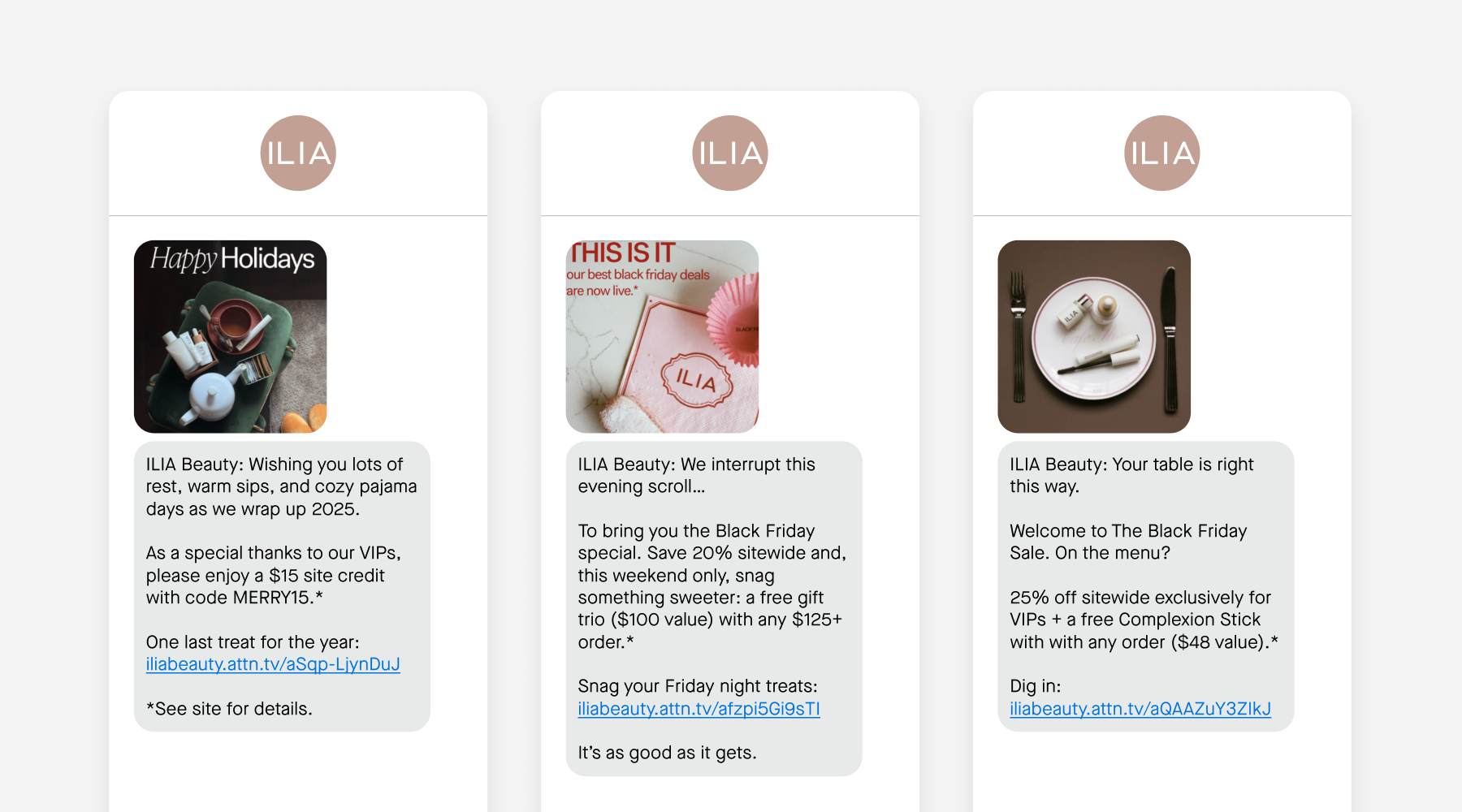 ILIA uses SMS to turn first-time buyers into repeat customers, with loyalty and lifecycle automations doing most of the work. As the program grew, the team wanted to scale personalization without defaulting to broad, frequent sends.