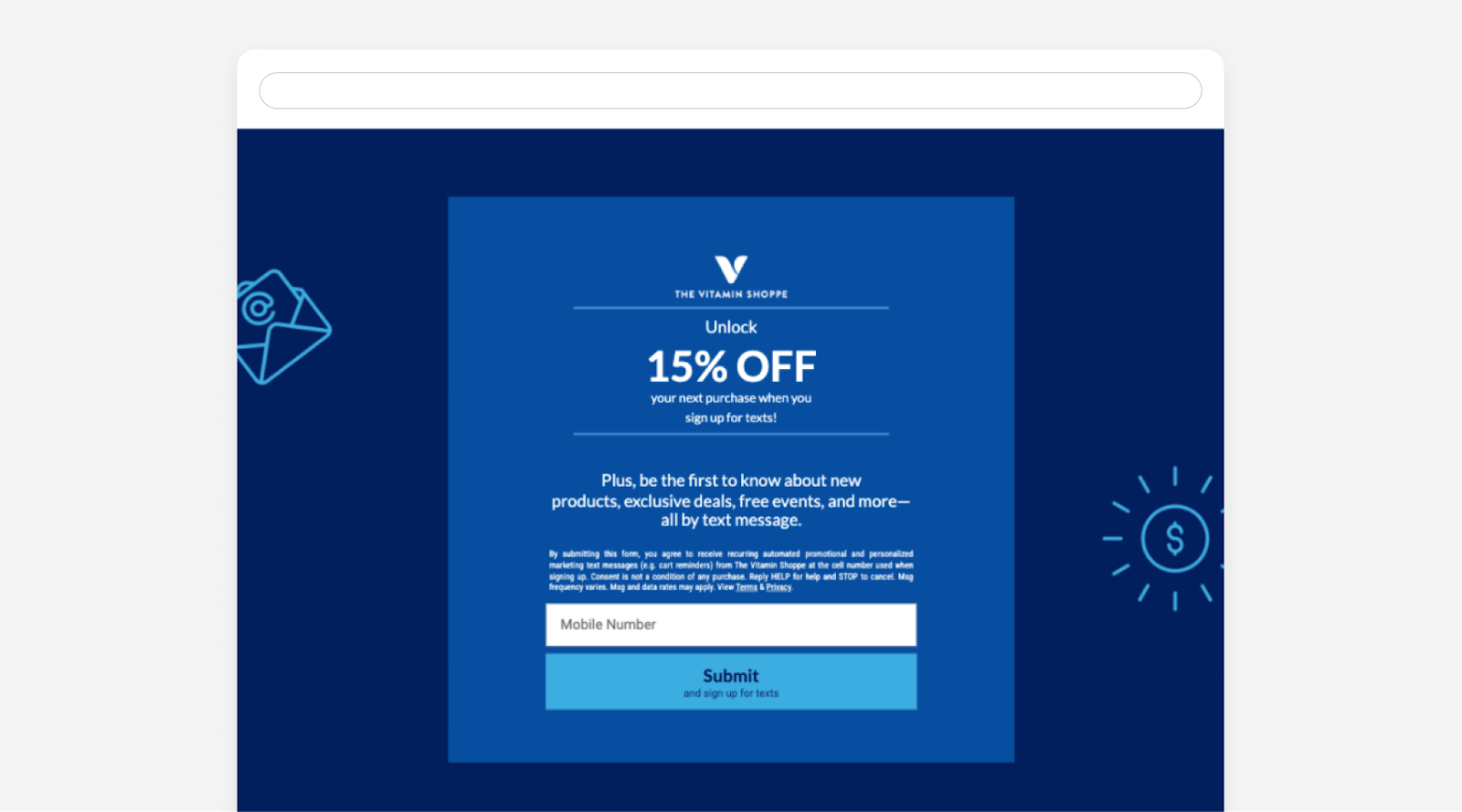 In 2021, The Vitamin Shoppe sought to build more meaningful connections with their consumers in an increasingly saturated market through SMS marketing. Personalized engagement was a top priority, and they wanted an easy way to acquire the subscriber data to power it. The immediacy of SMS is also particularly beneficial in the health sector, since wellness trends and product availability can impact someone’s health regimen.