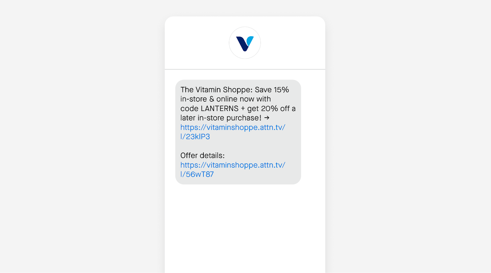 Moreover, The Vitamin Shoppe customizes its offers to resonate with the shopping behaviors of individual subscribers. They use their in-store database, match it with Attentive, and manually upload the data as an ‘In-store Purchasers’ segment within specific date ranges. For instance, subscribers who’ve shopped online in the past six months receive targeted web-based coupons, while those who’ve shopped in-store receive in-store offers.