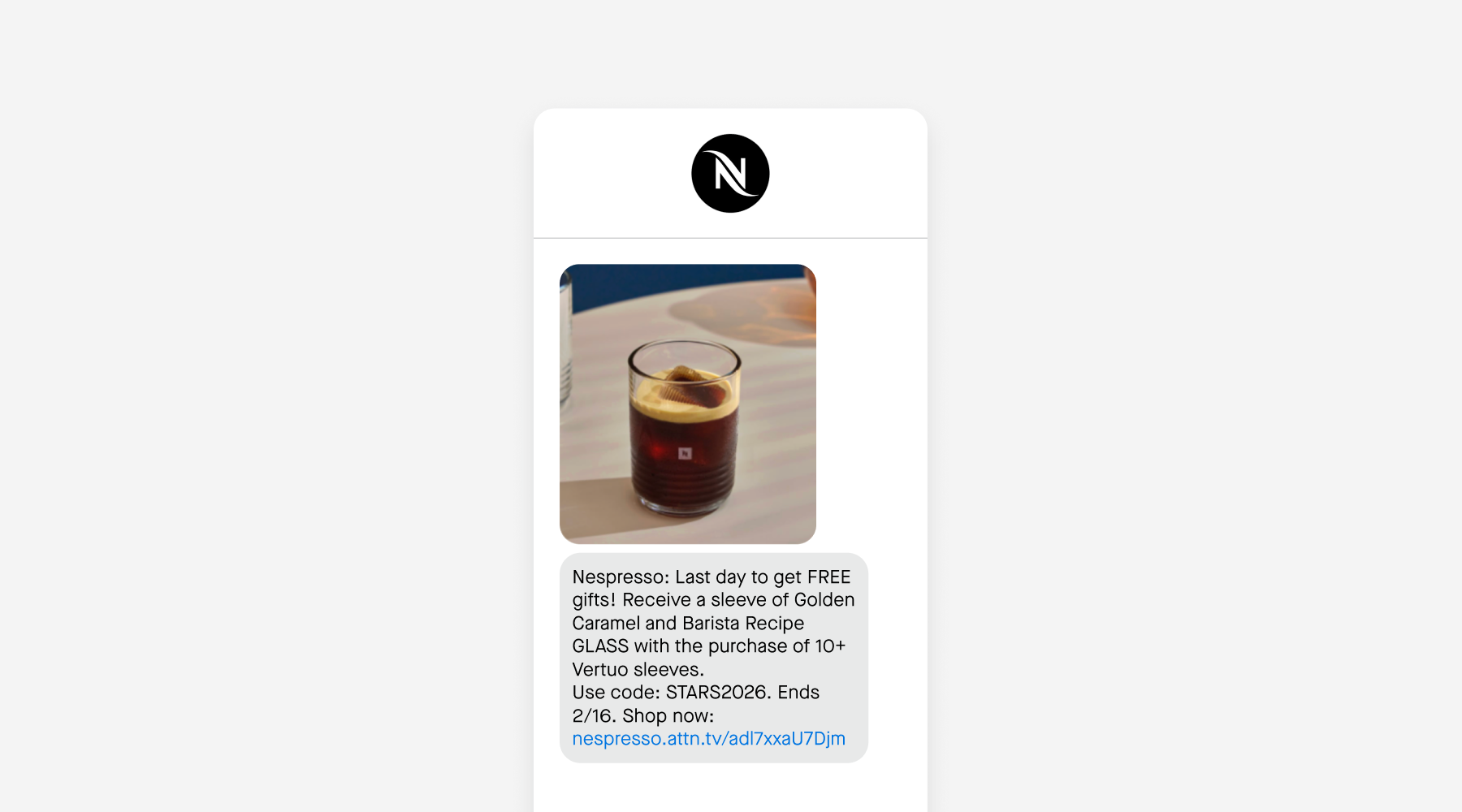 Nespresso maintains an intentional tone across SMS, even when messaging promotions. The team leans into elevated framing like “exclusive offer” and “limited time offer,” and avoids language that feels overly salesy or gimmicky. This consistency helps subscribers experience SMS as an extension of the brand, across both launches and promotional moments.