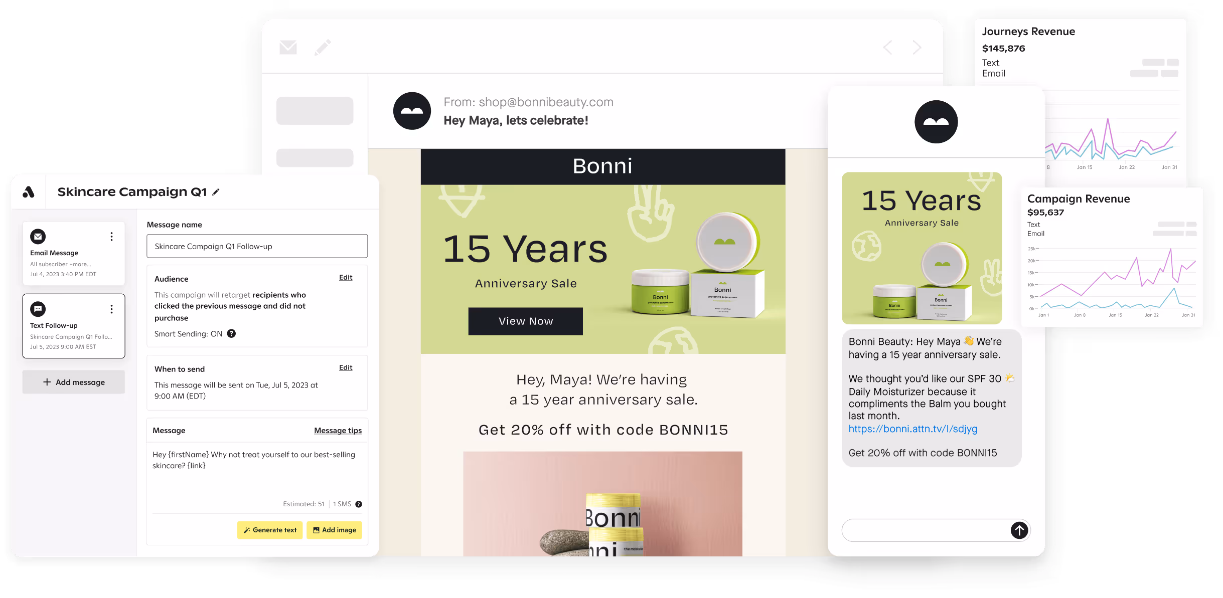 Attentive Email’s AI and automation capabilities are designed to help you orchestrate and maximize your text and email marketing programs and boost your customer touchpoints on one easy-to-use platform.