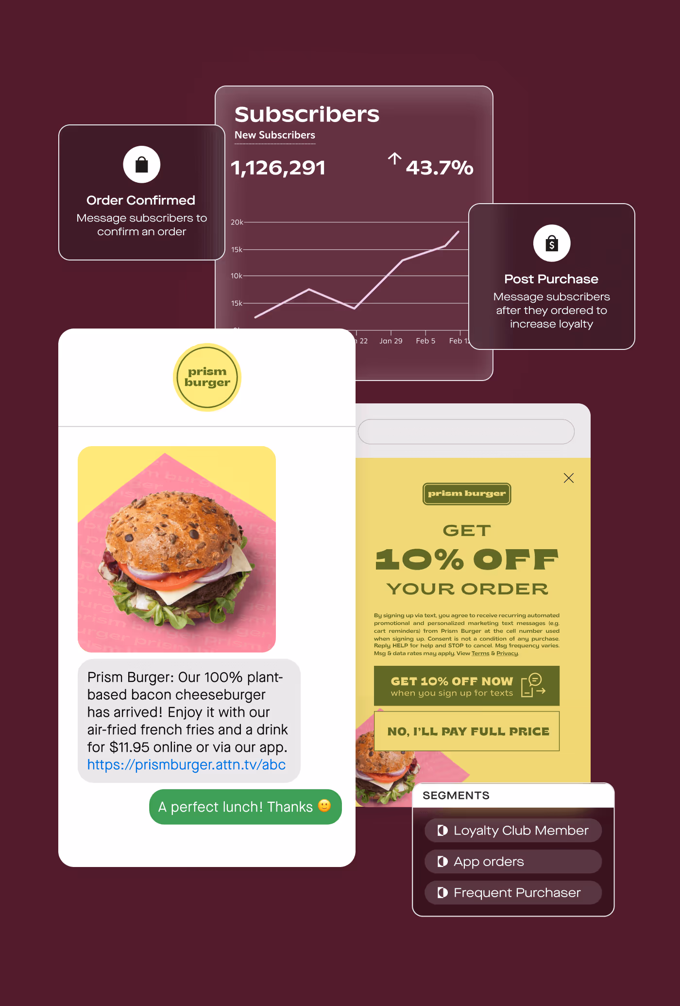 Turn browsers and third-party platform users into engaged guests with easy-to-use data management tools. Get more subscribers in the door with targeted promotions, discounts, and menu updates. Increase foot traffic with location-specific messages sent to the right audiences at the right time.