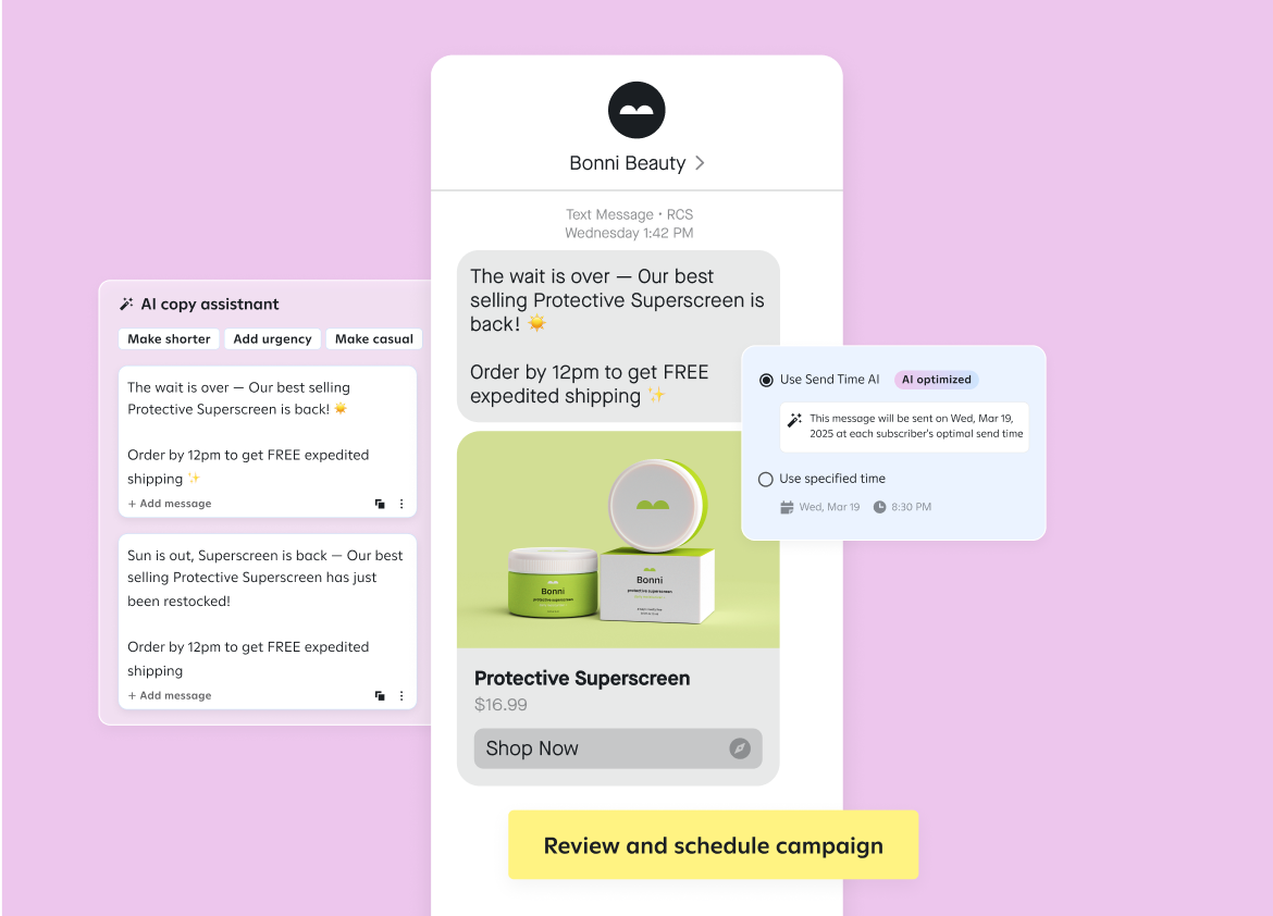 Instantly generate and schedule high-performing, personalized, multi-touch experiences and recurring sends that fit your brand voice and tone. Maximize campaign revenue with accurate segmentation that uses AI to predict the best performing content and send times for every audience.