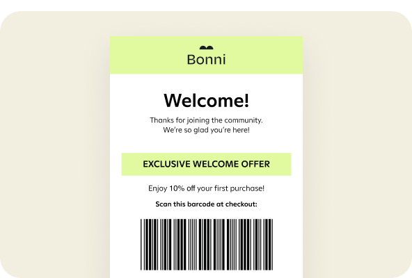 Connect online and in-store experiences with one-click barcode generation in emails—no custom HTML required.