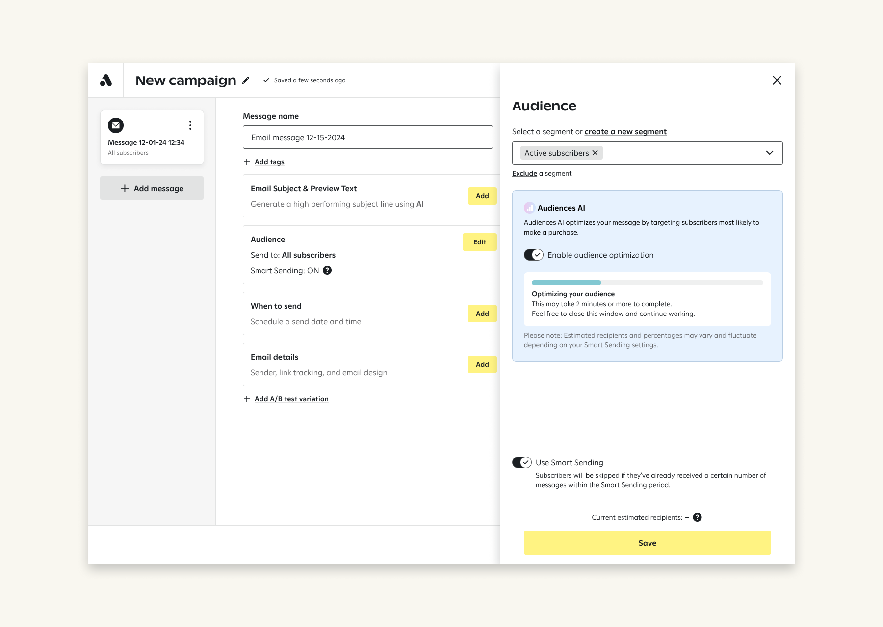 AI Pro for Email helps you reach your most profitable subscribers when they’re most likely to convert—using predictive models trained on your historical data. Marketers using AI Pro have driven up to 25% more email Campaign revenue by targeting high-value segments more precisely and sending at the perfect time.