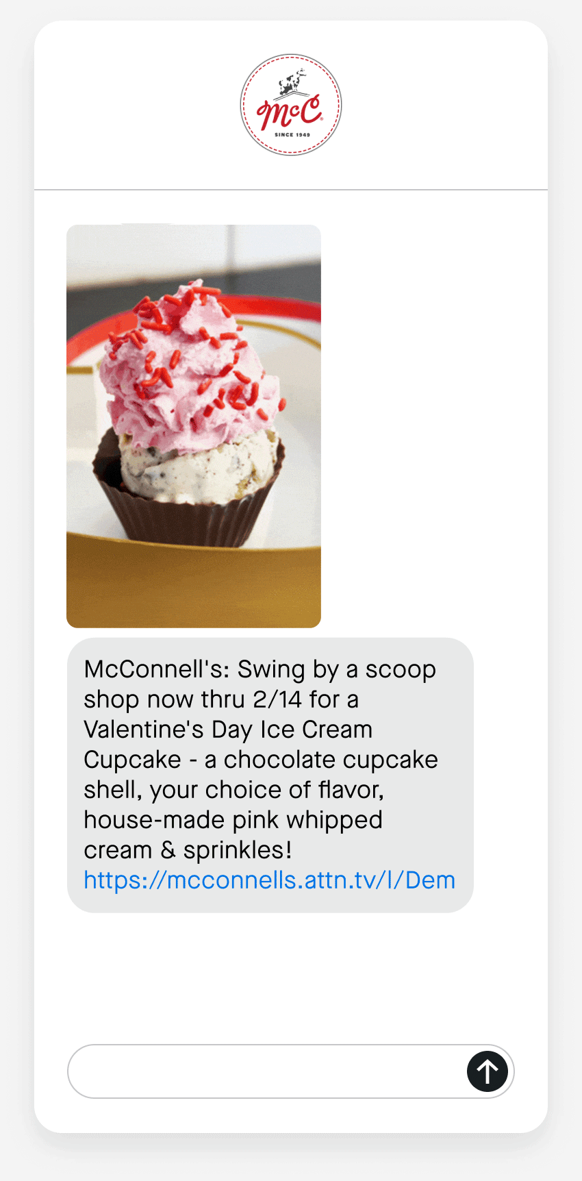 McConnell’s knows that Valentine's Day isn't just about exchanging gifts. It's also about making sweet memories with our loved ones. To help create these special moments for their customers, the ice cream company used geo-targeting to invite local subscribers to swing by a nearby scoop shop. There, they could enjoy a Valentine's Day cupcake (complete with house-made pink whipped cream) for a limited time.