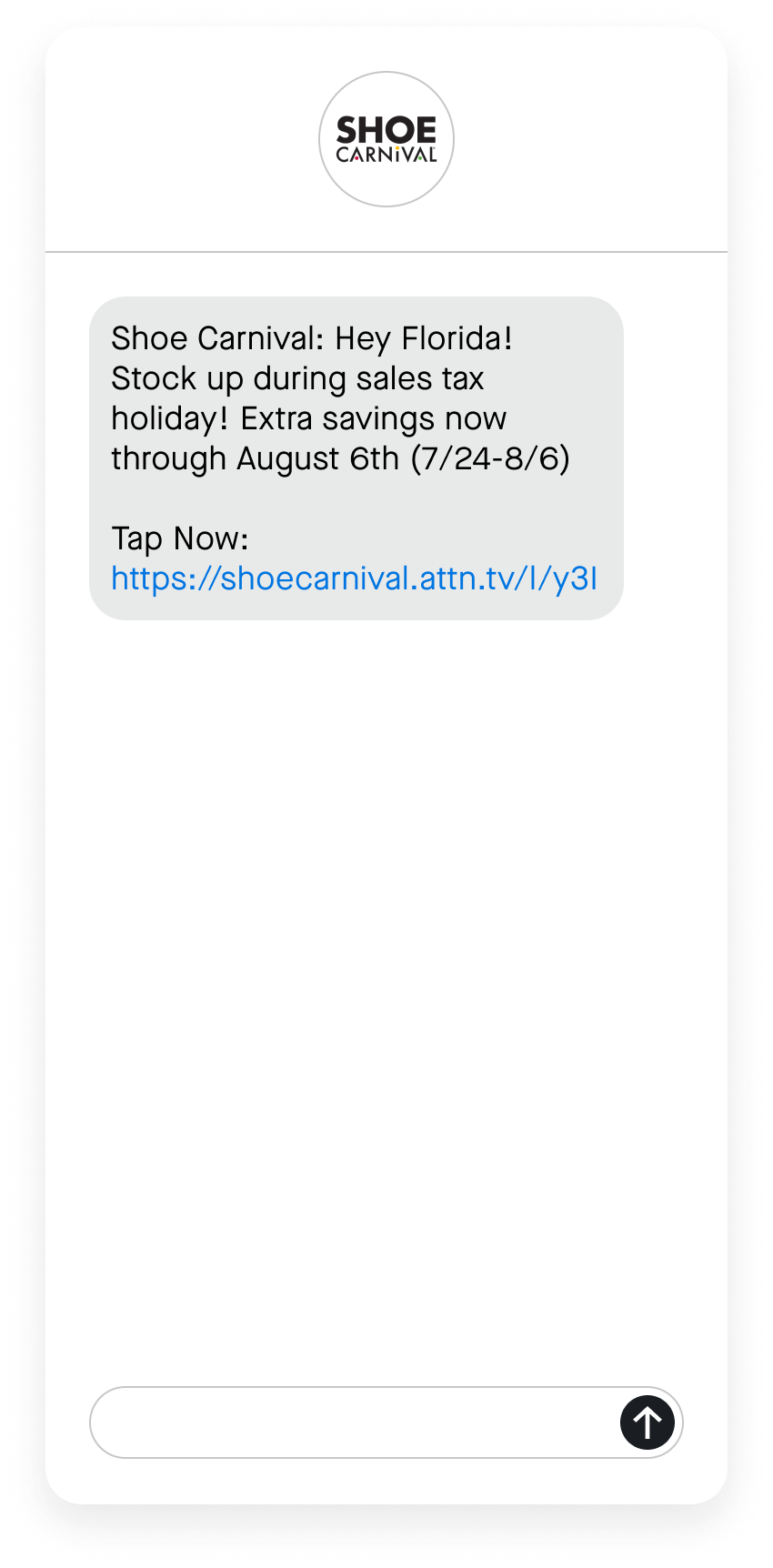 Certain states have a back-to-school sales tax holiday, when clothing, footwear, backpacks, notebooks, pencils, and other items are all tax-free for a period of time. To help parents, teachers, and students save on new shoes for the year, Shoe Carnival used geo-targeting to remind customers in those states—like Florida—to take advantage of the tax break.