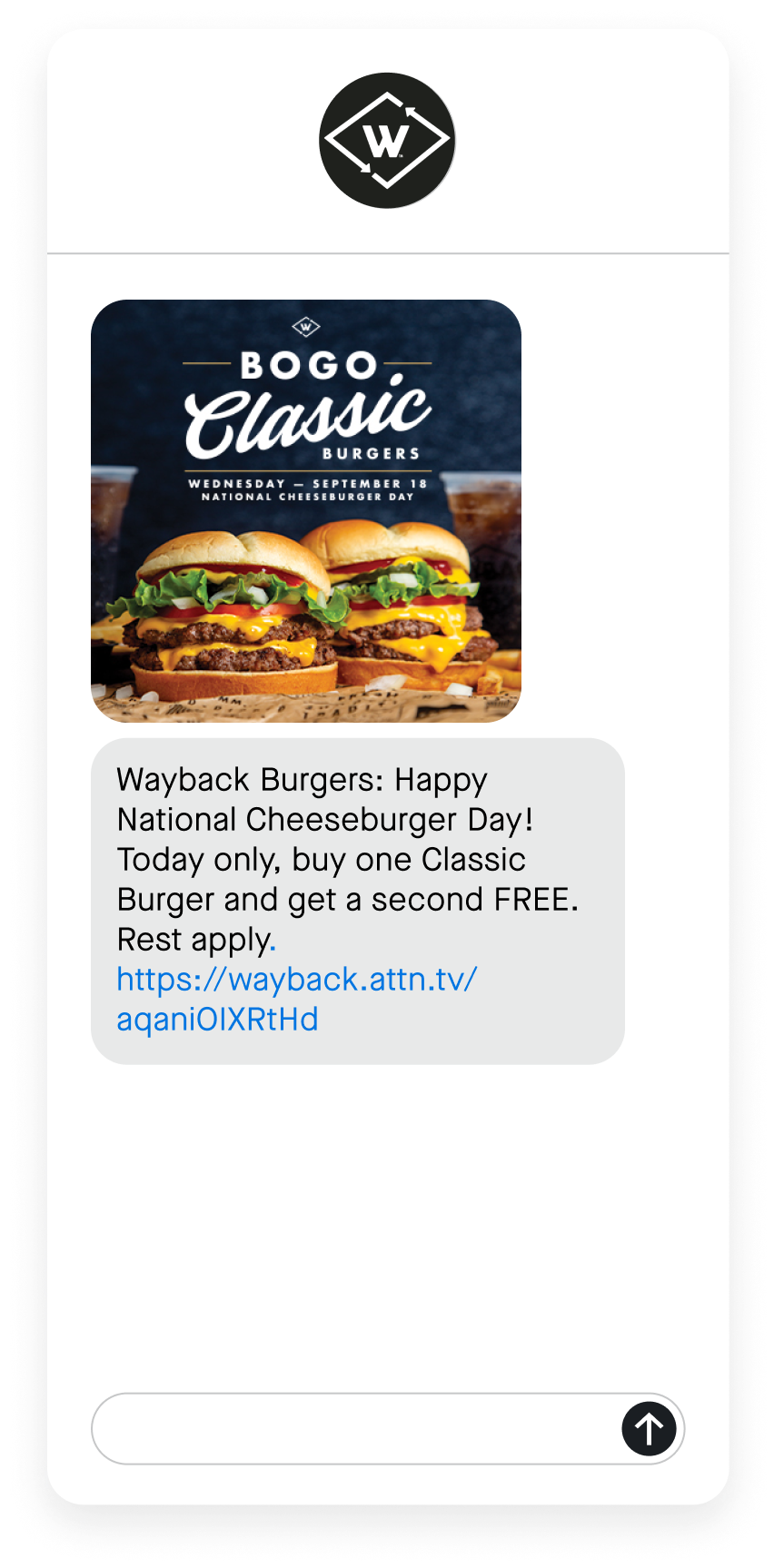 Wayback Burgers couldn’t skip celebrations for National Cheeseburger Day and texted subscribers letting them know about a one-day-only BOGO offer. This campaign was timely for any foodies looking to honor the holiday and save while doing so. Another plus? Without needing a coupon code, the offer was easy to act on.