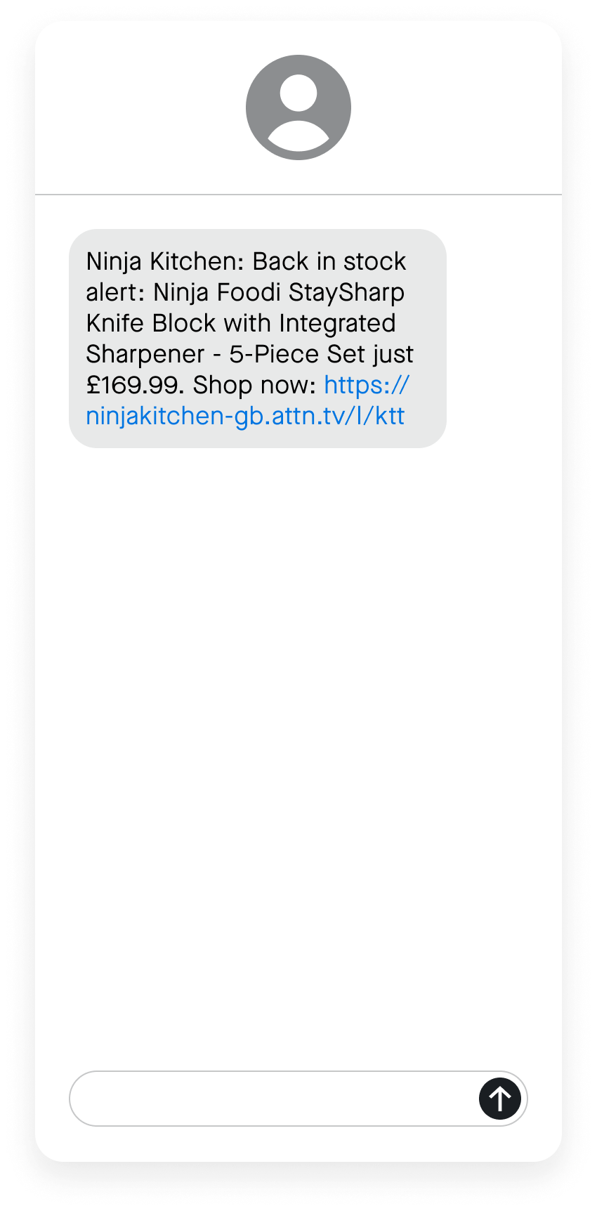 One great way to engage customers and get them to shop immediately? Create FOMO with back-in-stock alerts that announce when popular items are available for purchase again—like Ninja Kitchen did with one of their knife sets.