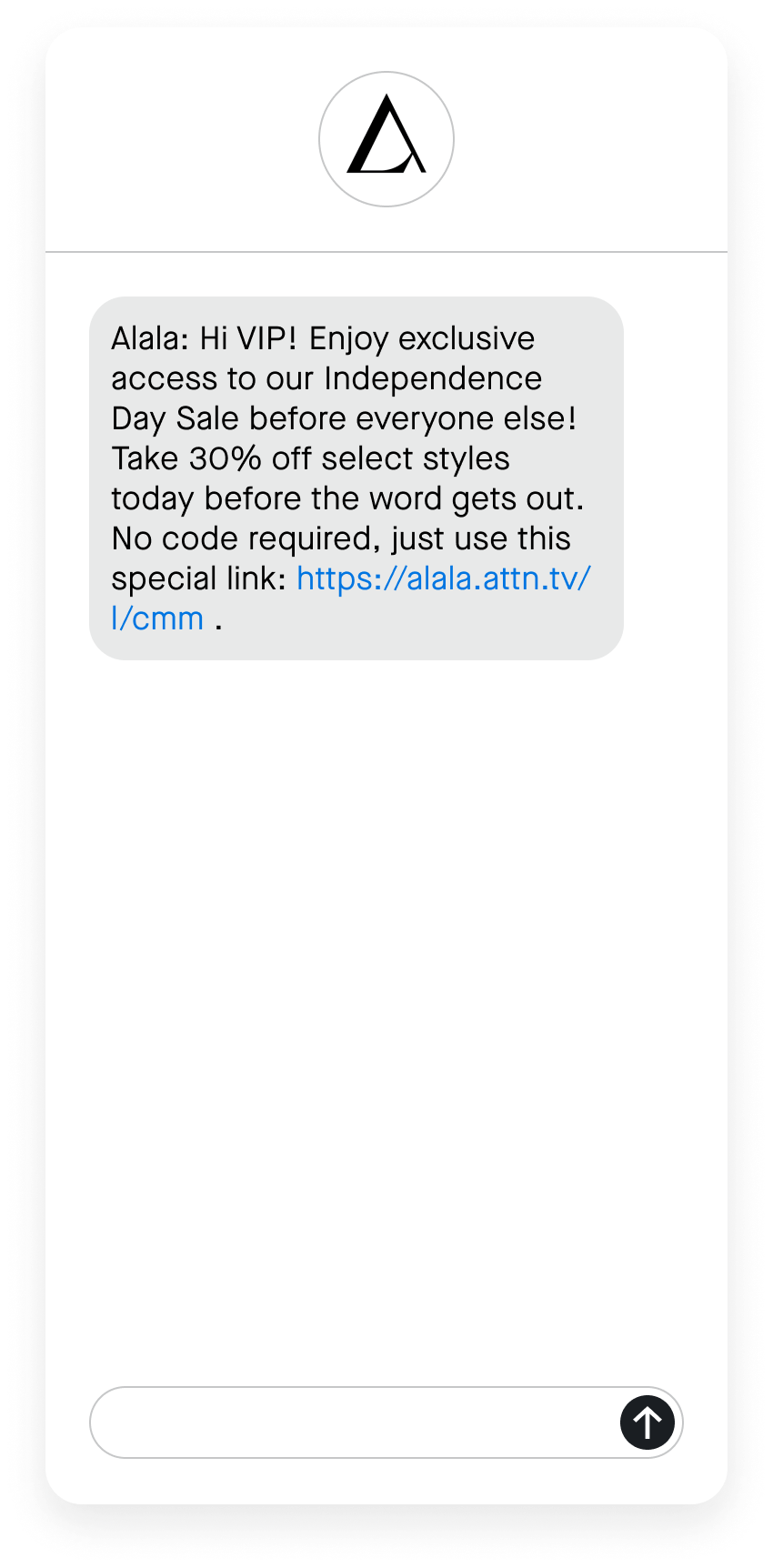 Alala sent their VIP segment of subscribers—those who’ve spent a certain dollar amount with the brand—exclusive access to shop their 4th of July sale before everyone else. Instead of sharing a code the subscriber would have to enter manually, they included a dynamic link that would automatically apply the discount at checkout.
