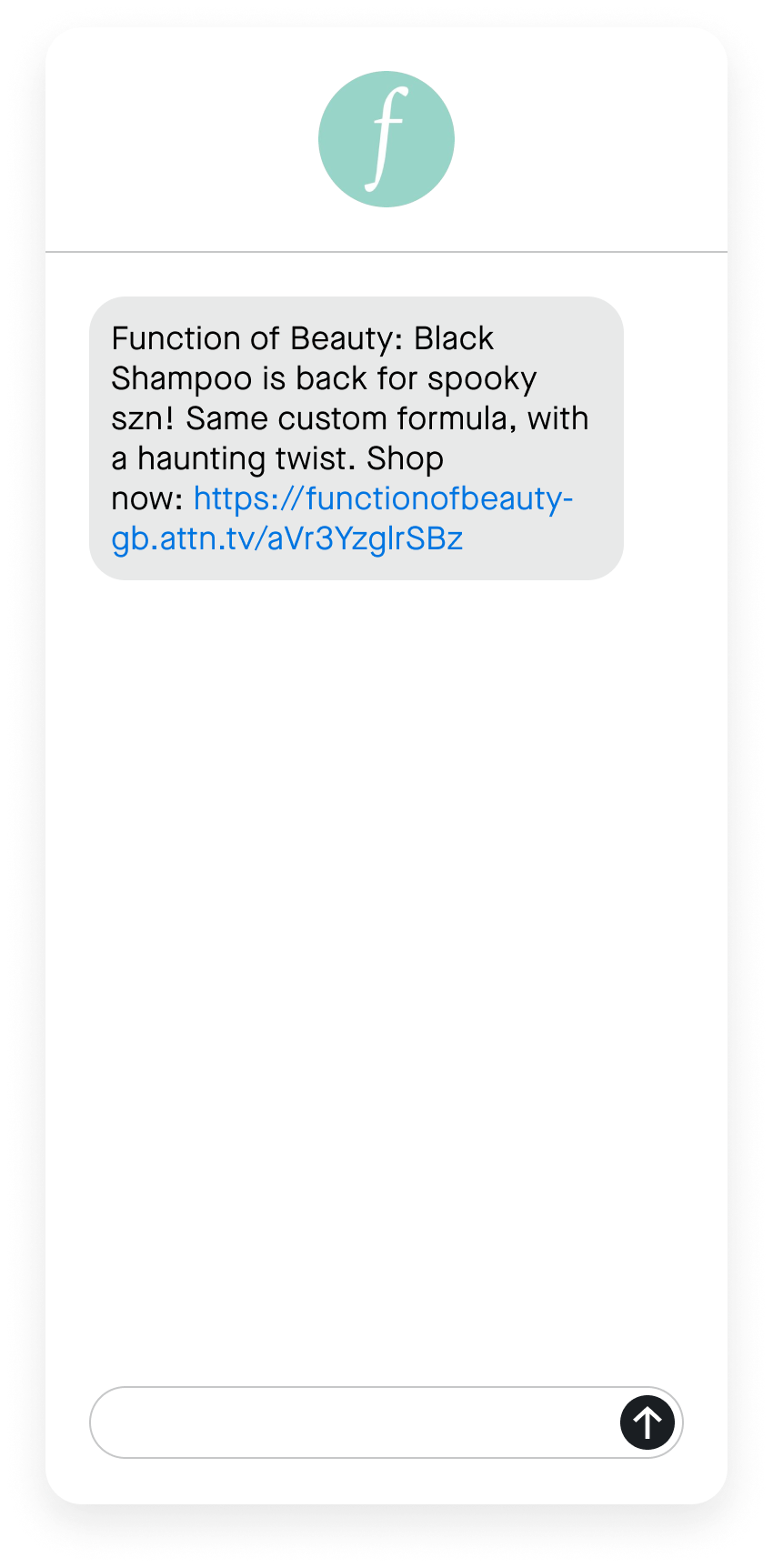 It’s creepy and kooky and most likely the shampoo used by a Halloween icon before she braids her hair, but most importantly, the black shampoo from Function of Beauty is a seasonal product. The limited-time nature of this offering compels consumers to shop immediately so they don’t miss out—and using SMS is the best way to serve that immediate need.