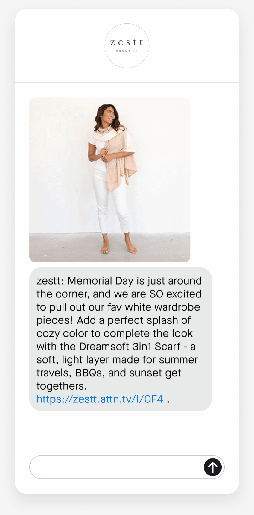 Zestt anticipated their subscribers’ Memorial Day needs with styling tips and inspiration. As many consumers are breaking out their white clothing, zestt recommended their best-selling scarf for a pop of color. The descriptive promotion inspired subscribers to picture how they would wear the item, and helped drive additional traffic to the product page.