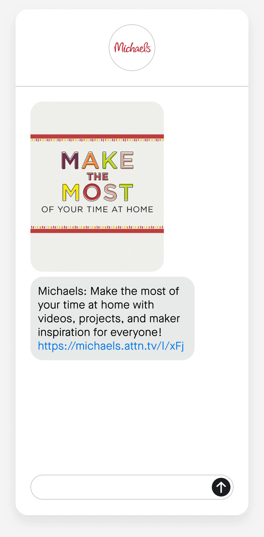 Specialty craft retailer Michaels used text messaging to share links to different “how-to” video tutorials, providing subscribers with DIY projects they can do at home using products available at Michaels. They’ve built an entire brand on their arts and craft supplies, and inspiring a community around creativity. By communicating with subscribers through a direct and immediate channel like text messaging, they’re able to share quality content that directly relates to available products.