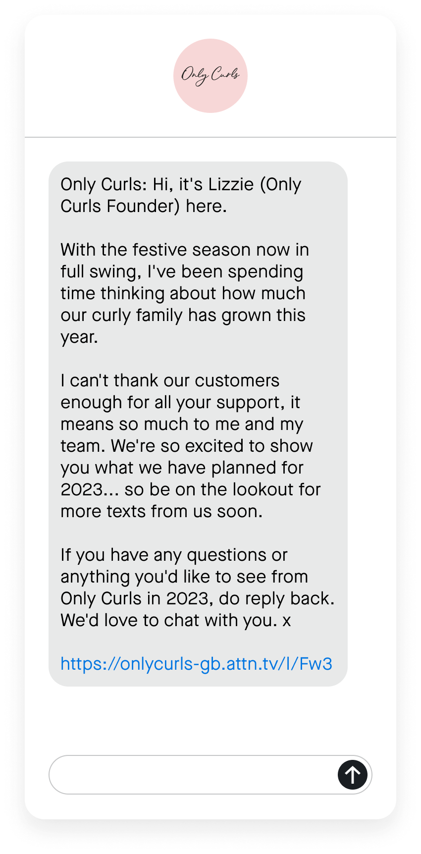 Only Curls took a moment during the busy holiday season to thank their customers and reflect on their growth. In a heartfelt message, the founder expressed gratitude for the support of their "curly family" and teased exciting plans for the year ahead. Customers were invited to reply directly to the message and share their thoughts and ask questions, fostering a sense of community.