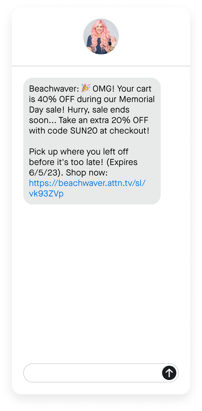 Beachwaver used their browse and cart abandonment reminders to boost engagement and revenue during their Memorial Day sale. They strategically updated the messaging to highlight the final day to get 40% off their entire site. It was a simple yet effective change, but by emphasizing the limited-time nature of their offer, they created a greater sense of urgency for customers to shop immediately and take advantage of the deal before it expired.