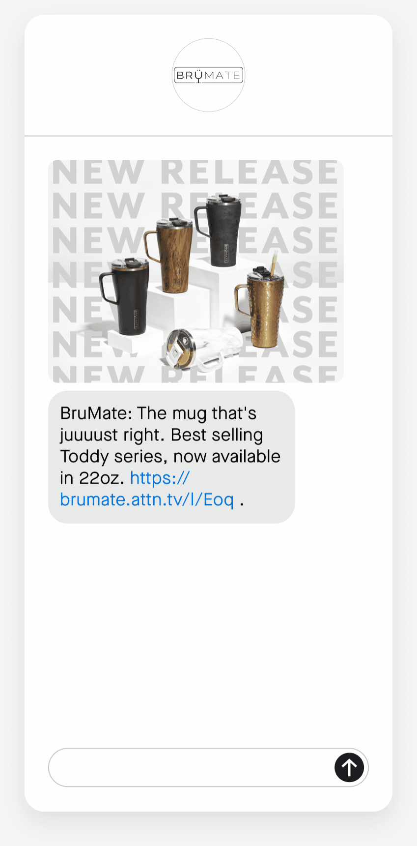 BrüMate used SMS to introduce a new version of their best-selling mug. They targeted the message to their high-interest subscriber segment—those who had added products from the Toddy collection to their cart, but hadn’t recently made a purchase. These engaged subscribers were quick to click the direct link and claim the best seller. Click below to see our BrüMate Toddy in the Attentive Goods store.