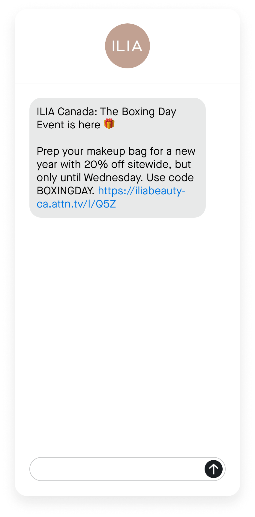 ILIA Canada launched a three-day Boxing Day Event to wrap up the holiday season and celebrate the new year on the horizon. On December 26, the clean beauty brand gave customers 20% off everything on the site, so they could stock up and refresh their makeup bags. But they only had until the 28th to shop, which created a sense of urgency for people to click through and purchase.