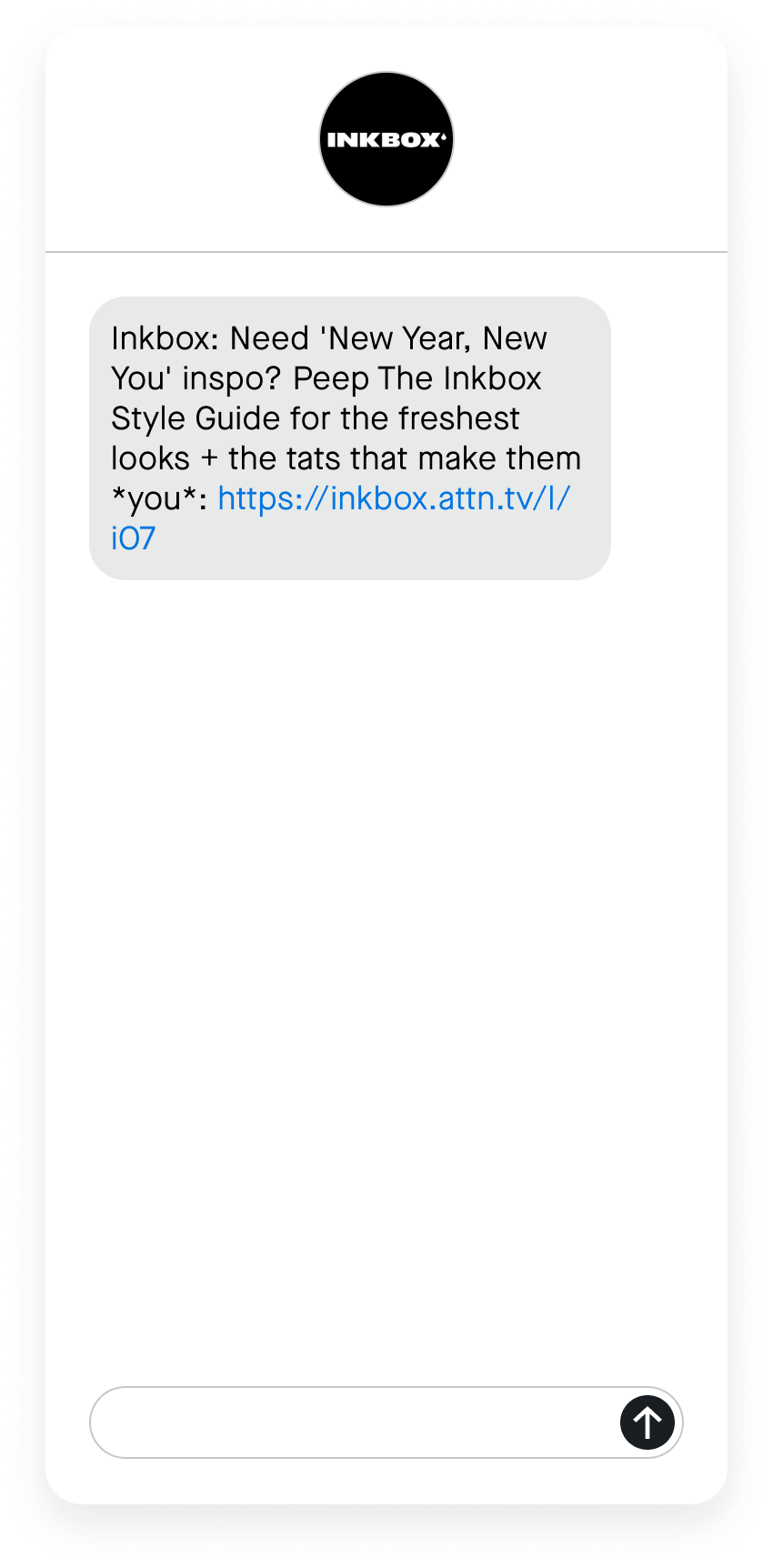 Inkbox inspired their SMS subscribers’ new year looks with a direct link to their style guide. To avoid fatiguing subscribers, Inkbox excluded customer segments that hadn't purchased or clicked on text messages in the last few months.