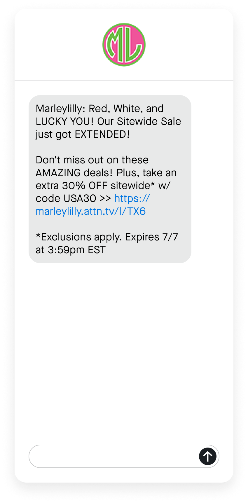 Marleylilly used the element of surprise to boost engagement and revenue from their 4th of July sale. They started with an enticing offer: 30% off everything on their website. Then, just as customers thought the sale was ending, Marleylilly extended the deal for another 48 hours. This move created a renewed sense of urgency for people who missed the initial offer to quickly take advantage of the extra time to shop.