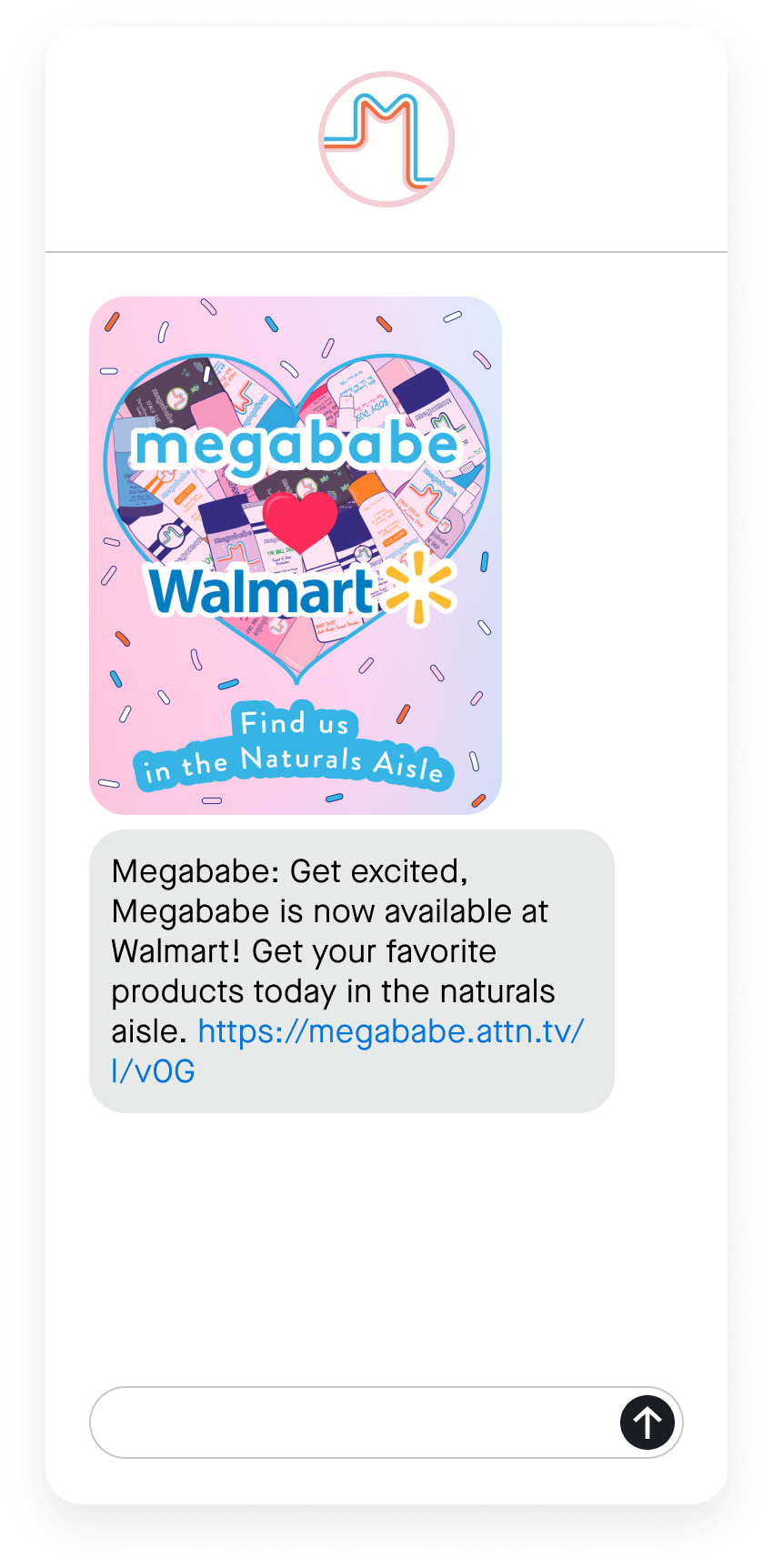 Megababe used Attentive's AI copy assistant to come up with ideas for their SMS campaign announcing the exciting news that their products are now available at Walmart. All they had to do was type in a few words, and within seconds, the tool generated a bunch of options for them. Then, they had the freedom to use the suggested copy as is or make a few tweaks—almost like having a teammate to brainstorm and riff on ideas with.